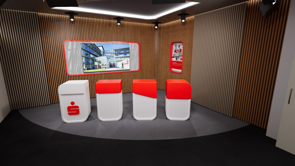 Das Ergebnis: Das neue Studio der Sparkasse Regensburg sieht exakt so aus wie unsere Renderings es zuvor gezeigt haben – technisch auf höchstem Niveau, im geplanten Budget, sogar leicht darunter. Ein Projekt, das Spaß gemacht hat und unseren Kunden begeistert.